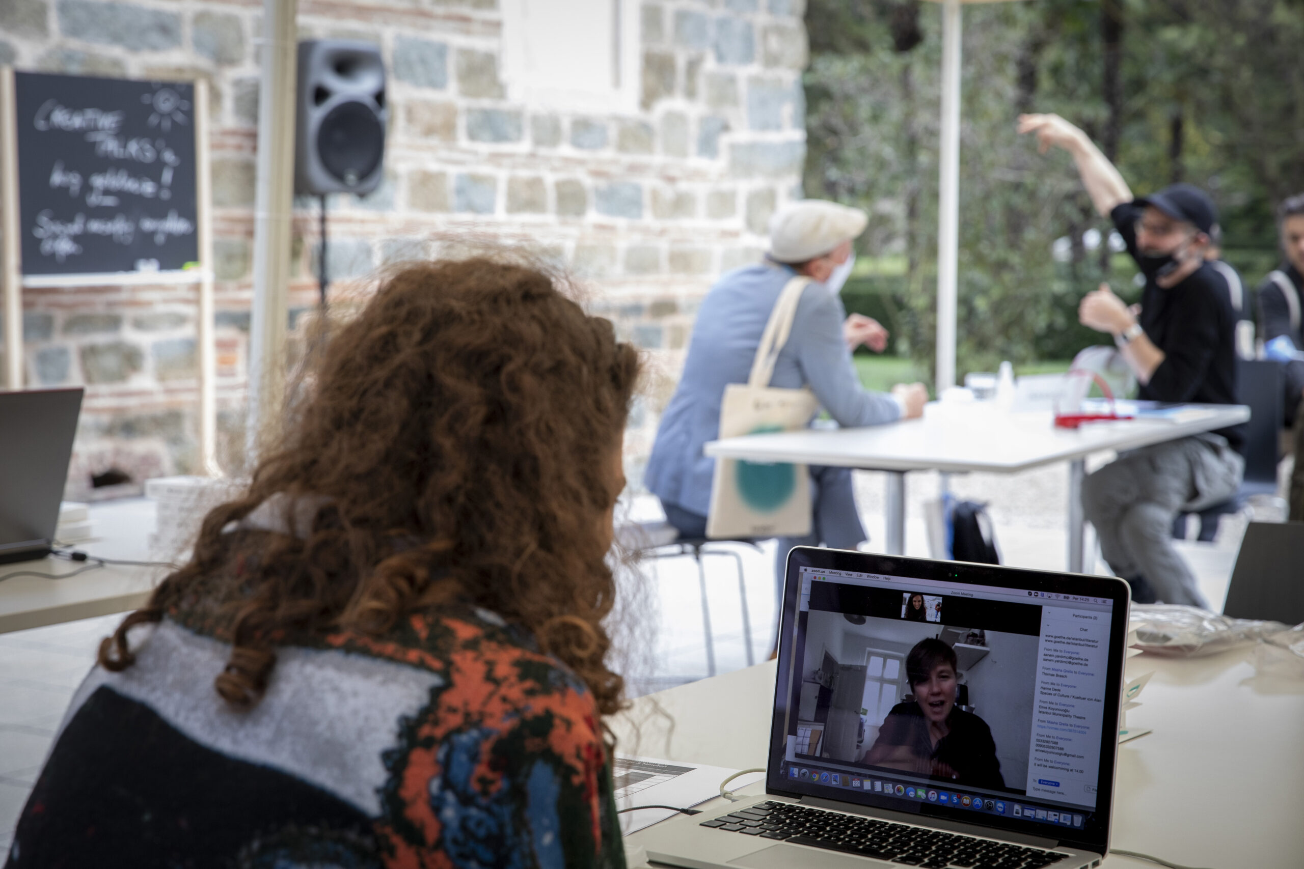 Am 22.10.20 trafen die sieben aktuellen Stipendiat*innen über 40 Vertreter*innen aus der türkischen Kunst- und Kulturszene darunter Meriç Öner, Halil Altindere, Buse Yıldırım und Moiz Zilberman. Ein spannender Austausch – natürlich unter strikten Hygienemassnahmen. Bei insgesamt 150 je siebenminütigen Speed Dates hatten die Stipendiat*innen die Möglichkeit, über ihre Arbeiten zu sprechen und neue Kontakte zu knüpfen.Stipendiatin Masha Qrella wurde aus Berlin zugeschaltet und auch Sanatatak-Herausgeberin Ayşegül Sönmez nahm virtuell an den Tarabya Talks teil.